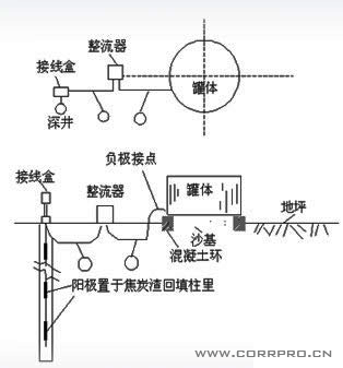 相對(duì)于淺埋陽極陰極保護(hù)而言,施工較復(fù)雜,一次性投資較高,調(diào)試也較復(fù)雜,F(xiàn)場(chǎng)是否適合采用深井保護(hù)還需考慮當(dāng)?shù)氐牡刭|(zhì)情況、地層結(jié)構(gòu)以及周圍金屬構(gòu)筑物的分布情況。但從其保護(hù)效果及投資來說,推薦在需要對(duì)整個(gè)大型罐區(qū)和埋地管網(wǎng)進(jìn)行保護(hù)時(shí)采用。