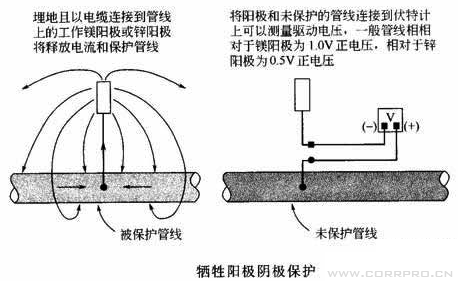 對(duì)于管線陰極保護(hù),犧牲陽極通常用于需要保護(hù)電流較小的場合(通常小于1A),以及土壤電阻率較低(通常小于10000歐.厘米),采用適量的陽極就可以獲得所需保護(hù)電流的地方。如果需要對(duì)采取哪種保護(hù)方式還存在疑問,那么就應(yīng)該進(jìn)行經(jīng)濟(jì)性分析。少量的涂覆良好的管線將需要中等的保護(hù)電流量。在土壤電阻率條件合適的地方,采用犧牲陽極可以滿足這種保護(hù)電流的需要。