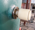 換熱器內(nèi)壁外加電流陰極保護(hù)是對(duì)密封容器內(nèi)金屬的一種電化學(xué)防腐形式。密閉容器內(nèi)通常有壓力、溫度、流速等因素的存在,會(huì)造成金屬的腐蝕加速。在換熱器運(yùn)行過程中,由于水流速度的變化,用水量的變化,以及壓力,溫度的頻繁變化,都會(huì)造成輸出電流、電壓的變化,還要考慮在運(yùn)行過程中由于換熱器內(nèi)部結(jié)構(gòu)造成的幾何屏蔽,根據(jù)換熱器的形狀,內(nèi)部金屬部件的分布和形狀來確定陽極的安裝位置,使其保護(hù)電流達(dá)到均勻分布的效果,從而對(duì)換熱器內(nèi)壁進(jìn)行有效的陰極保護(hù)。